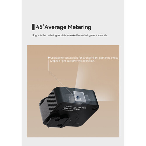 Điểm nổi bật là khả năng đo sáng phản chiếu từ góc 45° – tức nó đo ánh sáng phản xạ từ chủ thể hoặc cảnh — chứ không phải đo ánh sáng rọi (incident) như nhiều light meter cao cấp.