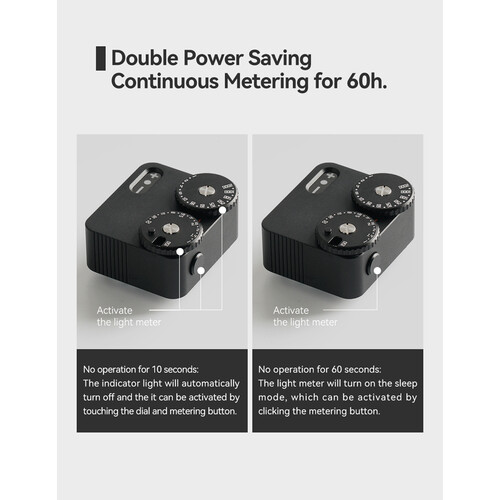 Về năng lượng, Light Meter II sử dụng 1 viên pin CR1632 loại alkaline. Thiết bị cũng được trang bị cơ chế tiết kiệm năng lượng: nếu không sử dụng trong khoảng 10 giây, đèn chỉ báo tắt; nếu không tiếp xúc thao tác trong 60 giây, máy chuyển sang chế độ “sleep”.