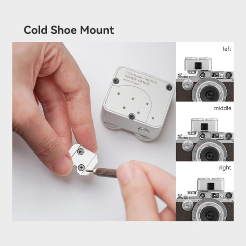 Thiết bị gắn vào hot shoe (cold shoe) trên máy ảnh để đặt vị trí đo sáng dễ dàng, và vị trí gắn có thể điều chỉnh để tương thích với nhiều kiểu máy ảnh cổ điển.