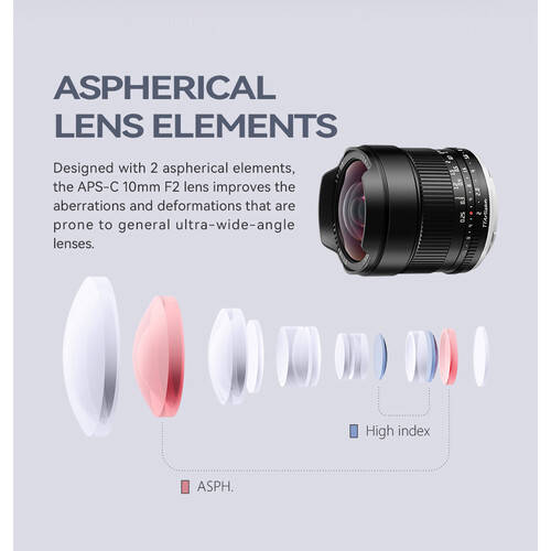 Ống kính TTArtisan 10mm f/2.0 là một lựa chọn siêu góc rộng dành cho máy ảnh mirrorless sử dụng cảm biến APS‑C, mang đến góc nhìn tương đương ~15mm trên máy full‑frame. Với khẩu độ lớn f/2.0, ống kính này cho phép thu nhiều ánh sáng, cực kỳ hữu ích khi chụp thiếu sáng, chụp đêm, hoặc bầu trời sao. Thiết kế quang học bao gồm hai thấu kính aspherical nhằm cải thiện độ sắc nét từ trung tâm đến rìa ảnh, cùng hai thấu kính có chỉ số khúc xạ cao (high index) để giảm hiện tượng sai sắc (chromatic aberration) và đảm bảo truyền màu tốt.