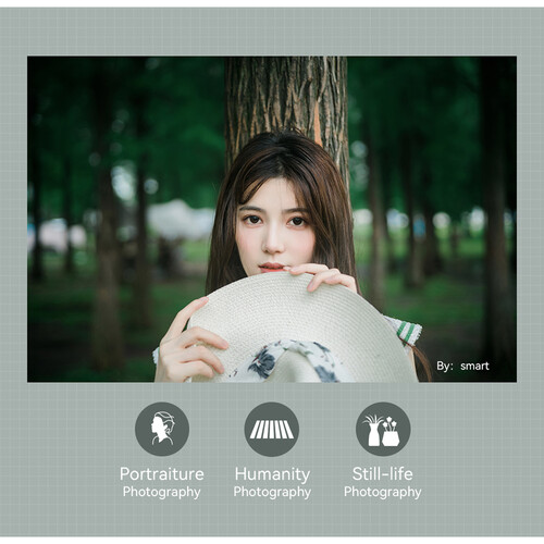 Một điểm nổi bật là lens rất nhỏ gọn và nhẹ: khoảng 190‑200g tuỳ mount, chiều dài ~ 35 mm (không tính hood) và đường kính tổng thể tương đối nhỏ. Filter trước là 43 mm, một kích thước rất dễ tìm kính lọc bổ trợ như UV / ND / CPL. Khoảng cách lấy nét tối thiểu khoảng 50 cm (0.5 m) — đủ gần để chụp gần chủ thể nhỏ, tĩnh vật, hoặc quay cảnh có chủ thể không quá sát lens.