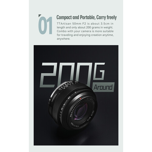 Ống kính TTArtisan 50mm f/2 là một lens prime thủ công (manual focus) được thiết kế cho máy ảnh mirrorless full‑frame, phù hợp với nhiều mount như Sony E, Nikon Z, Canon RF, Leica L, Fujifilm X (với crop), Canon EOS‑M, Micro Four Thirds, và các mount khác. Đây là một lựa chọn giá rẻ nhưng rất đáng cân nhắc cho người dùng muốn một lens “tiêu chuẩn / normal prime” gọn gàng, nhẹ nhàng, dễ mang theo, có hiệu suất quang học tốt trong điều kiện ánh sáng vừa phải và cho bokeh đẹp.