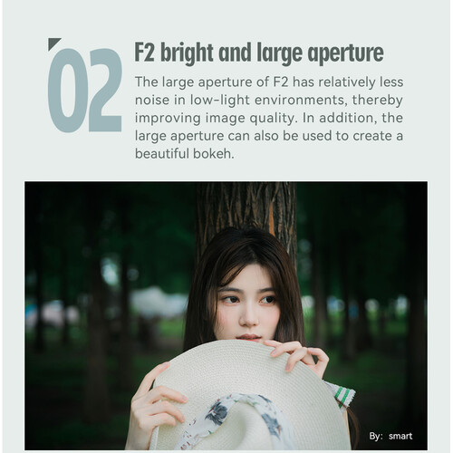 Với khẩu độ tối đa f/2, ống kính này đủ sáng để chụp trong điều kiện ánh sáng yếu hơn so với các lens f/2.8 tiêu chuẩn, đồng thời tạo độ sâu trường ảnh hợp lý để làm nổi bật chủ thể so với nền, đặc biệt khi chụp chân dung, ảnh đường phố, ảnh đời thường. Dù là manual focus nhưng được đánh giá là có vòng lấy nét rõ ràng, mượt, có đánh dấu khoảng cách lấy nét, thuận tiện trong sử dụng.