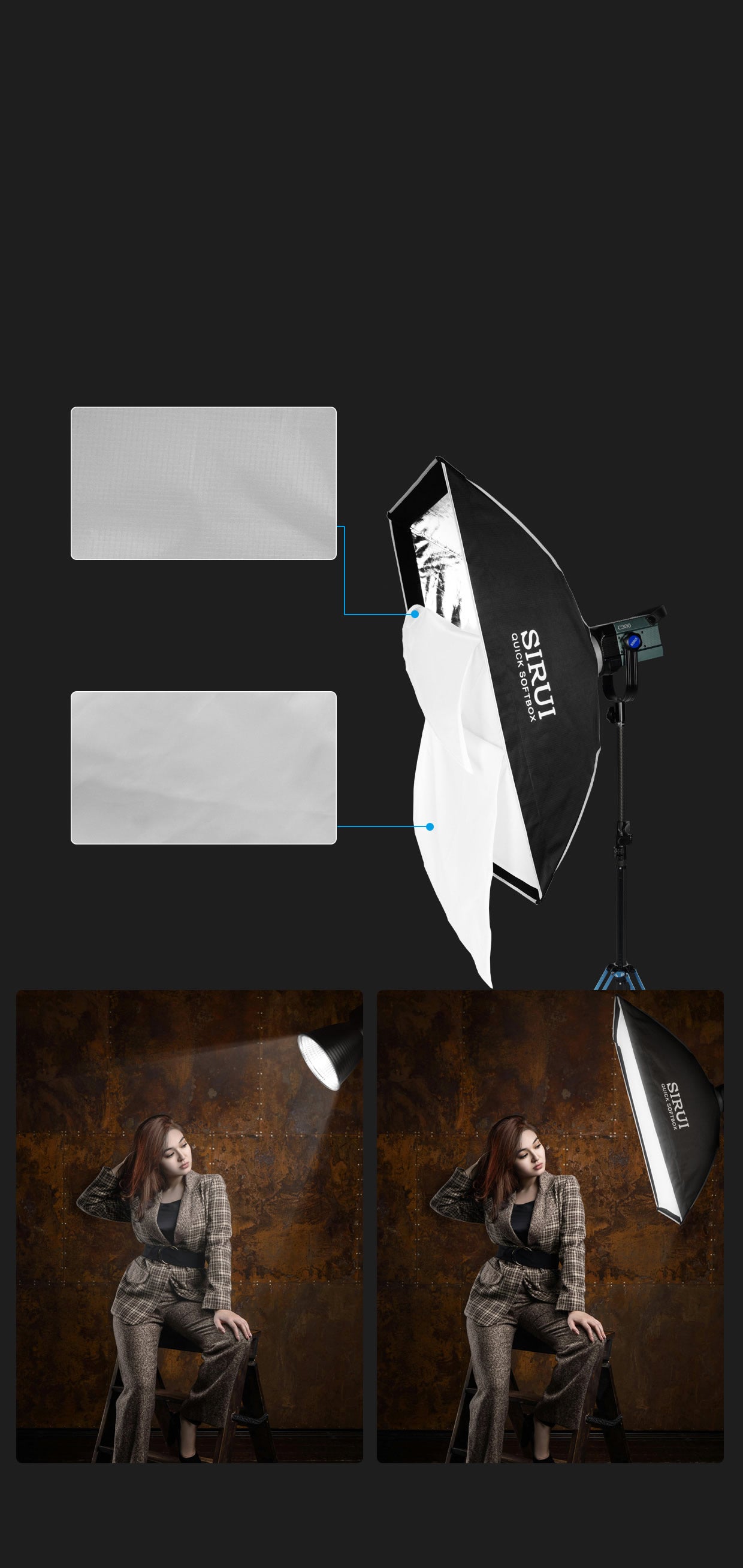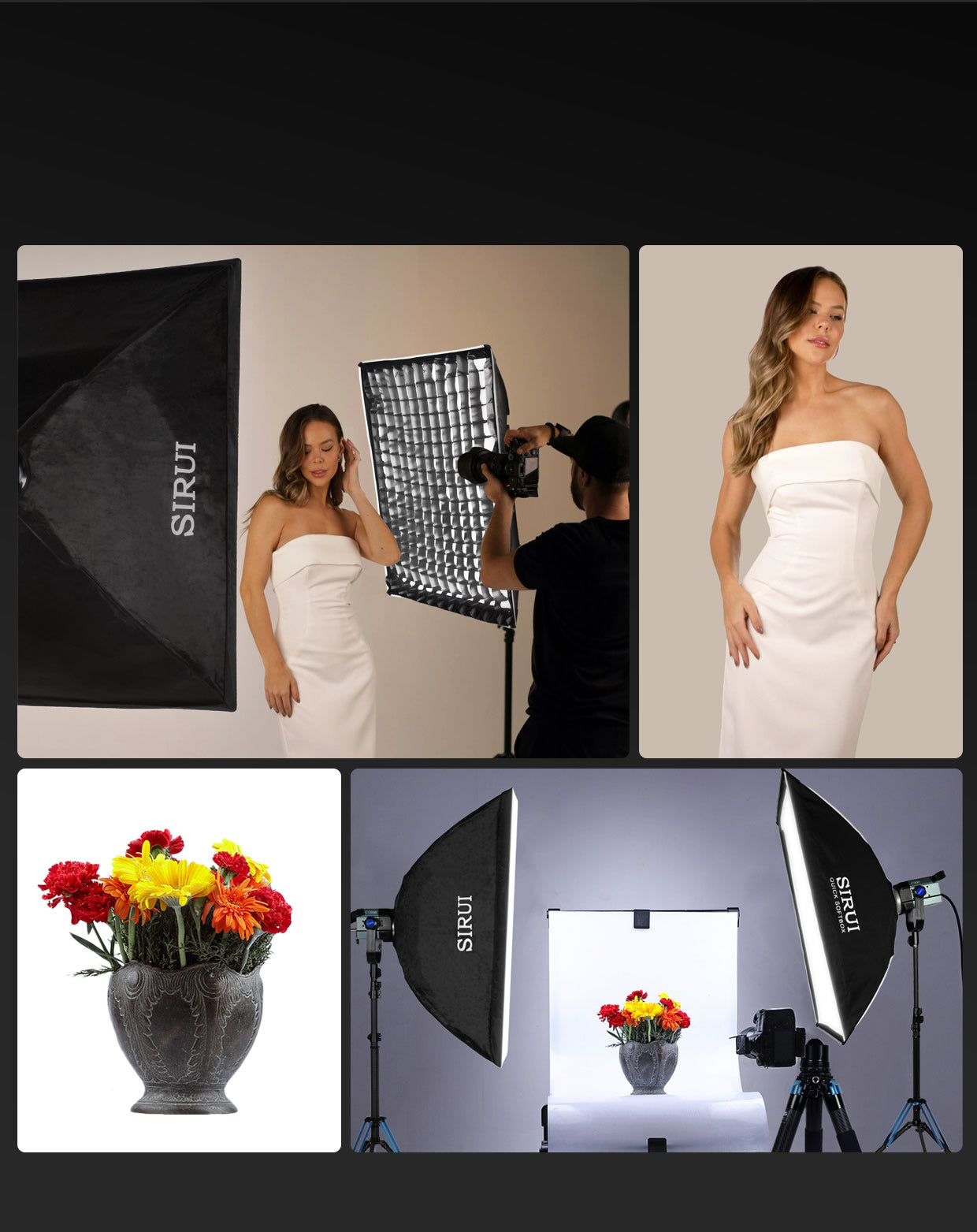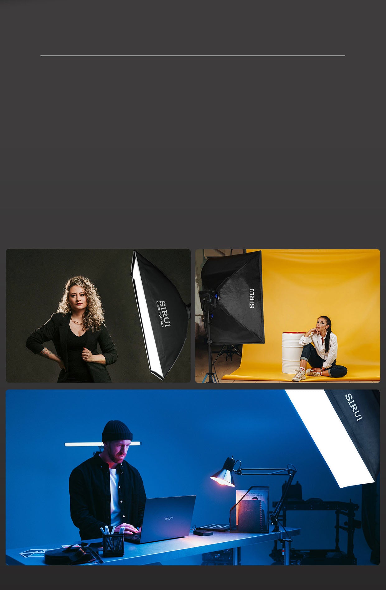 Sirui RGX6090 là softbox hình chữ nhật kích thước 60 × 90 cm (23.6 × 35.4 in), được thiết kế để tạo ra ánh sáng mềm mại, đều mà bạn cần khi làm việc với các đèn LED monolight. Với lớp lót bên trong màu bạc phản quang, thêm cả baffle nội thất có thể tháo rời và tấm phân tán phía trước, sản phẩm giúp giảm hiện tượng chói và tạo hiệu ứng ánh sáng dịu dàng, đẹp mắt